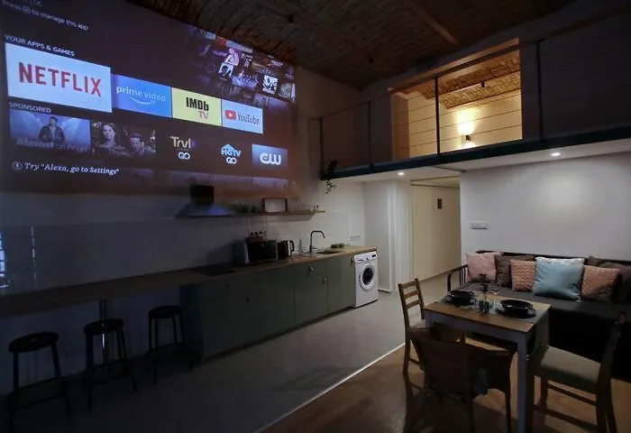 Offering a balcony, Canga Downtown Studio for 6ppl, balcony, projector comes with modern amenities like a multi-channel TV, enhancing your stay. The property includes a shower for your comfort. Hairdryers and towels can also be found.